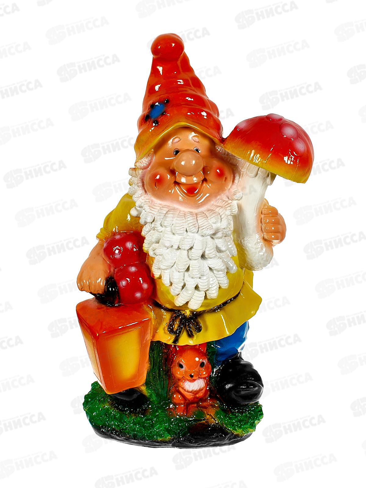 Код:560604; Фигура садовая из гипса "Гном с грибом" большой (580*320мм) арт.211