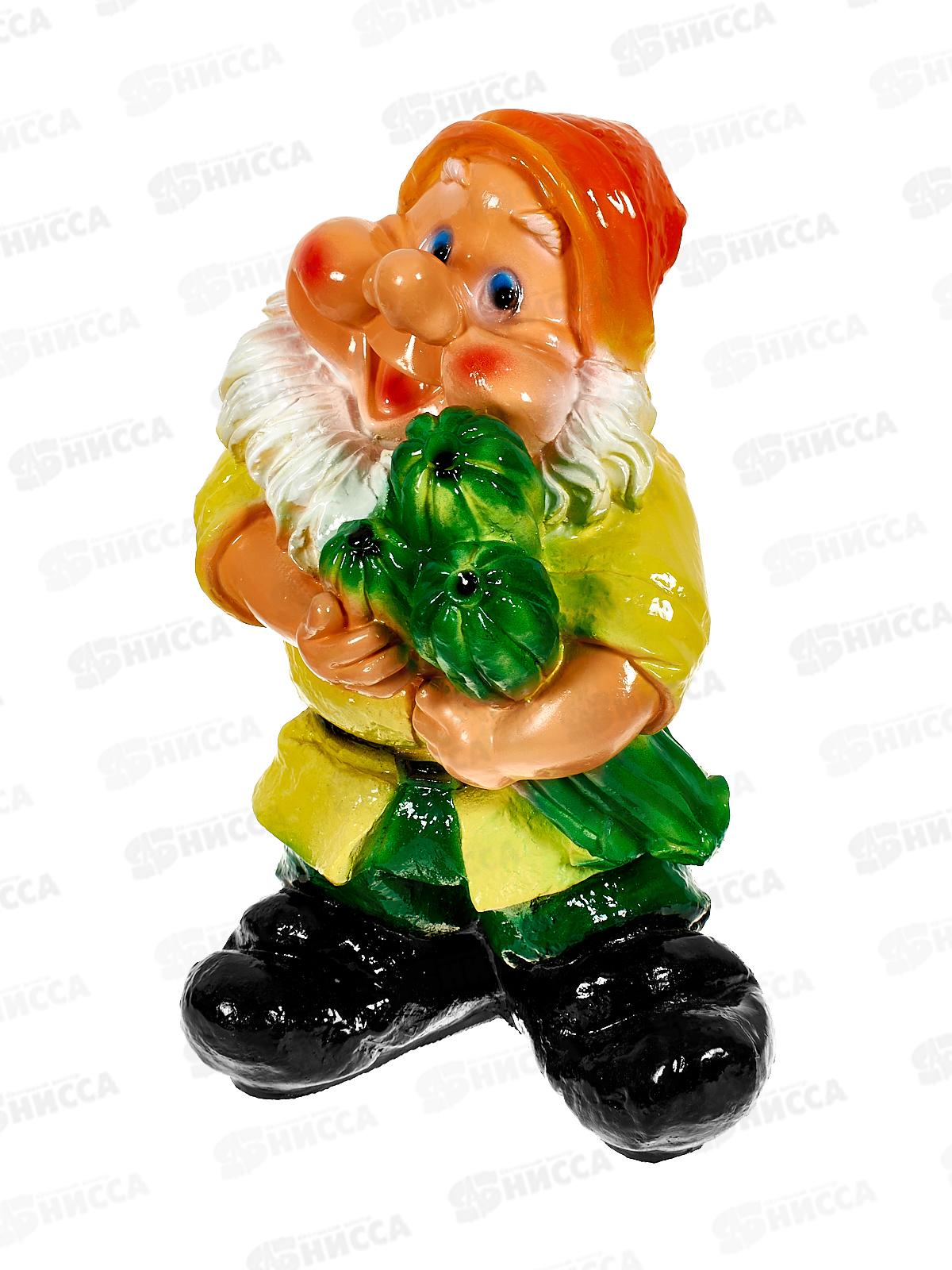 Код:560605; Фигура садовая из гипса "Гном с кабачком" (240*360мм) арт.235