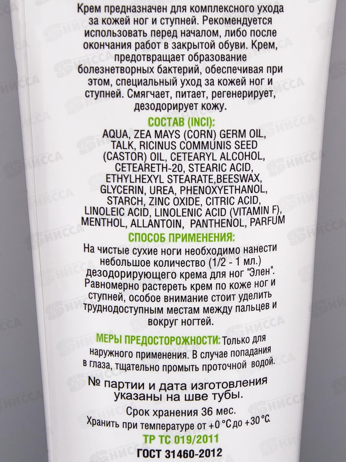 ЭЛЕН крем для ног дезодорирующий, 100мл, 1015*100