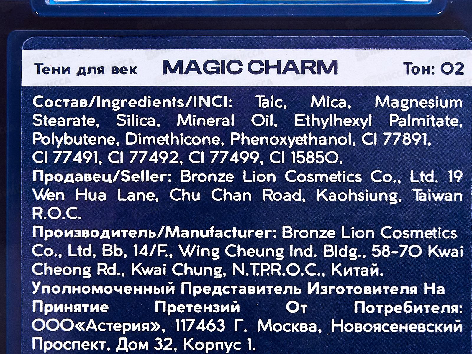 Состав: тальк, Слюда, стеарат магния, диоксид кремния, Минеральное масло, этилгексилпальмитат, Полибутен, Диметикон, феноксиэтанол, Cl 77891, CI 77491, CI 77492, CI 77499, CI 1585O.