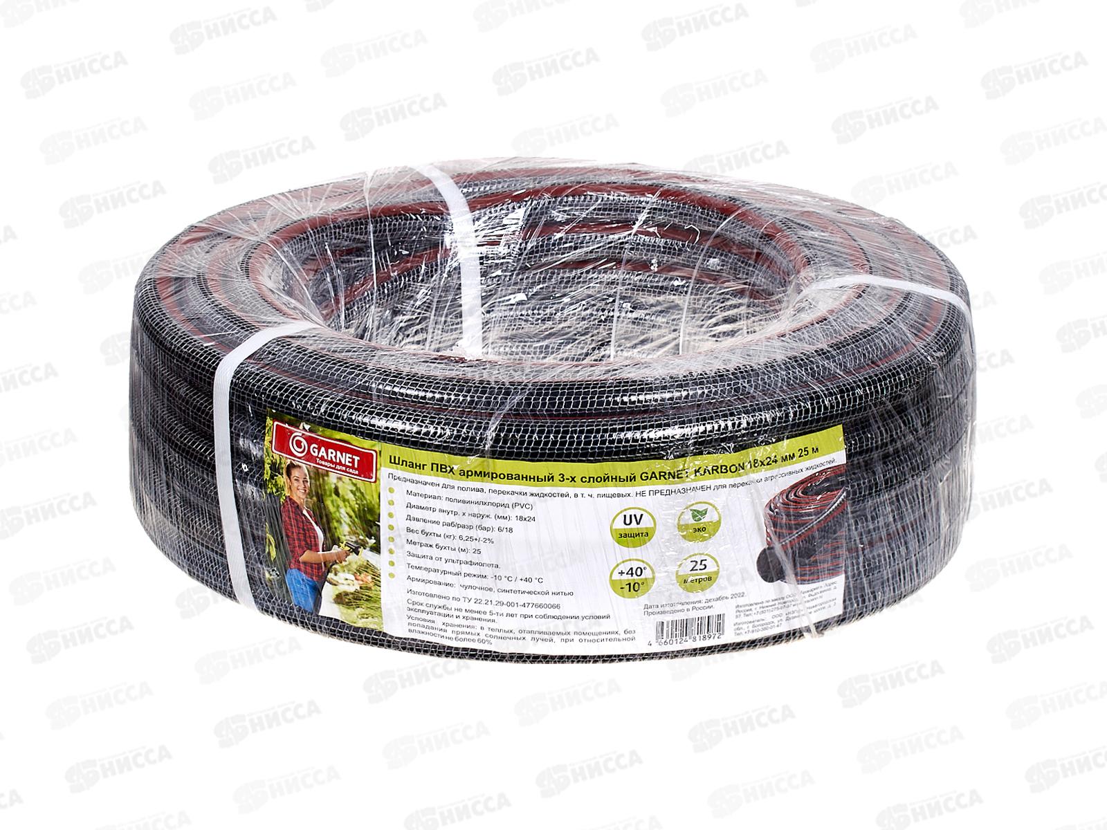 Код:567911; Шланг поливочный ПВХ армированный 3-x слойный 3/4 GARNET KARBON c красной полосой 25м