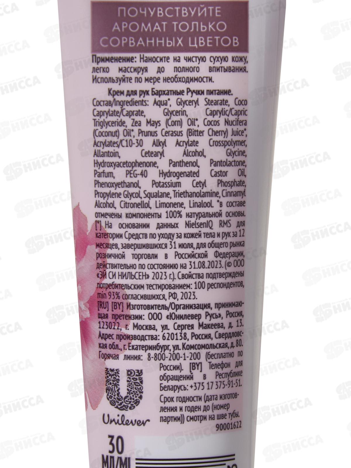 Концерн Калина БАРХАТНЫЕ РУЧКИ крем для рук Питание 30мл *18