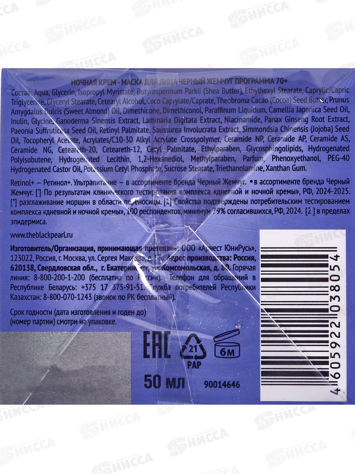 КК ЧЖ от 70+ Крем-маска ночная Ретинол 50мл *12