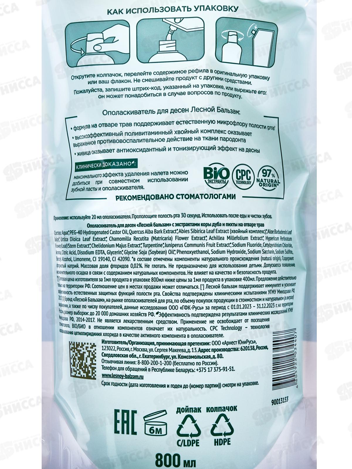 КК ЛЕСНОЙ БАЛЬЗАМ ополаскиватель для полости рта 800мл Кора дуба дой-пак *6