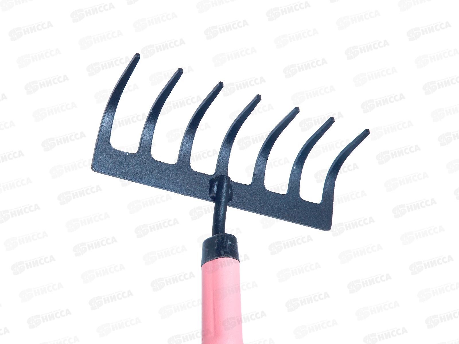Грабли 7-зубые со стальным черенком черный/розовый 1646