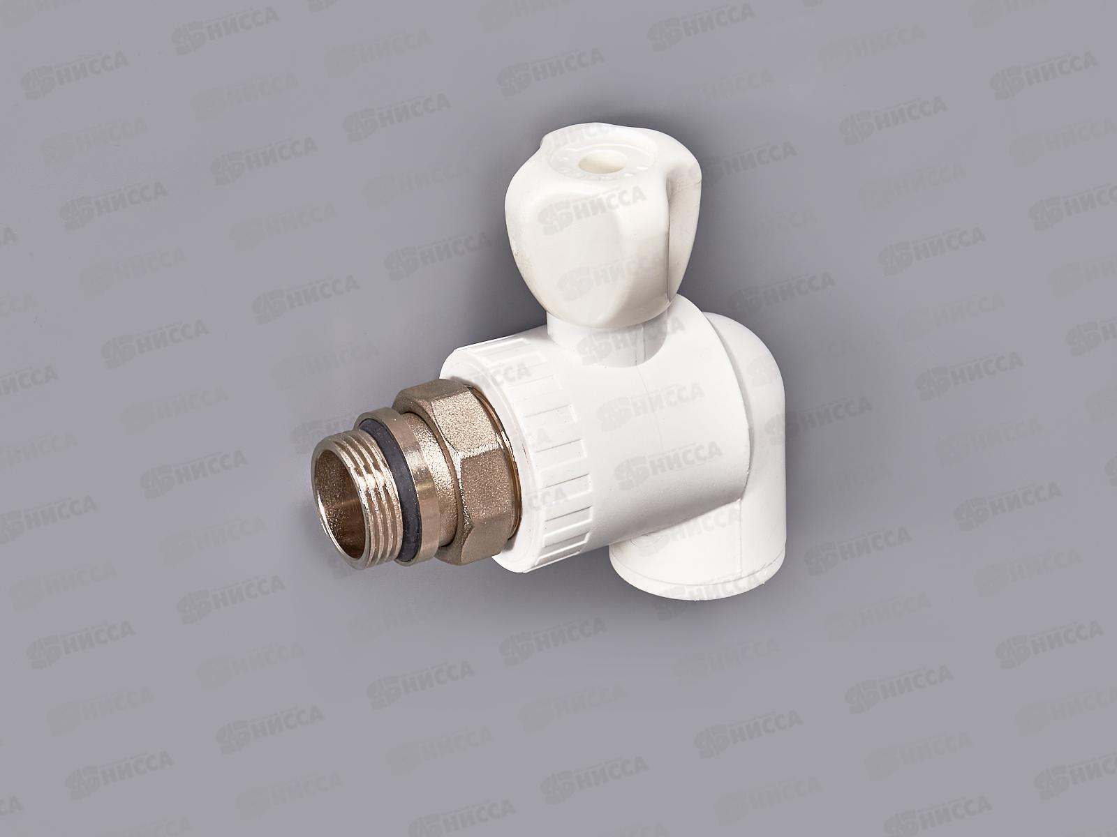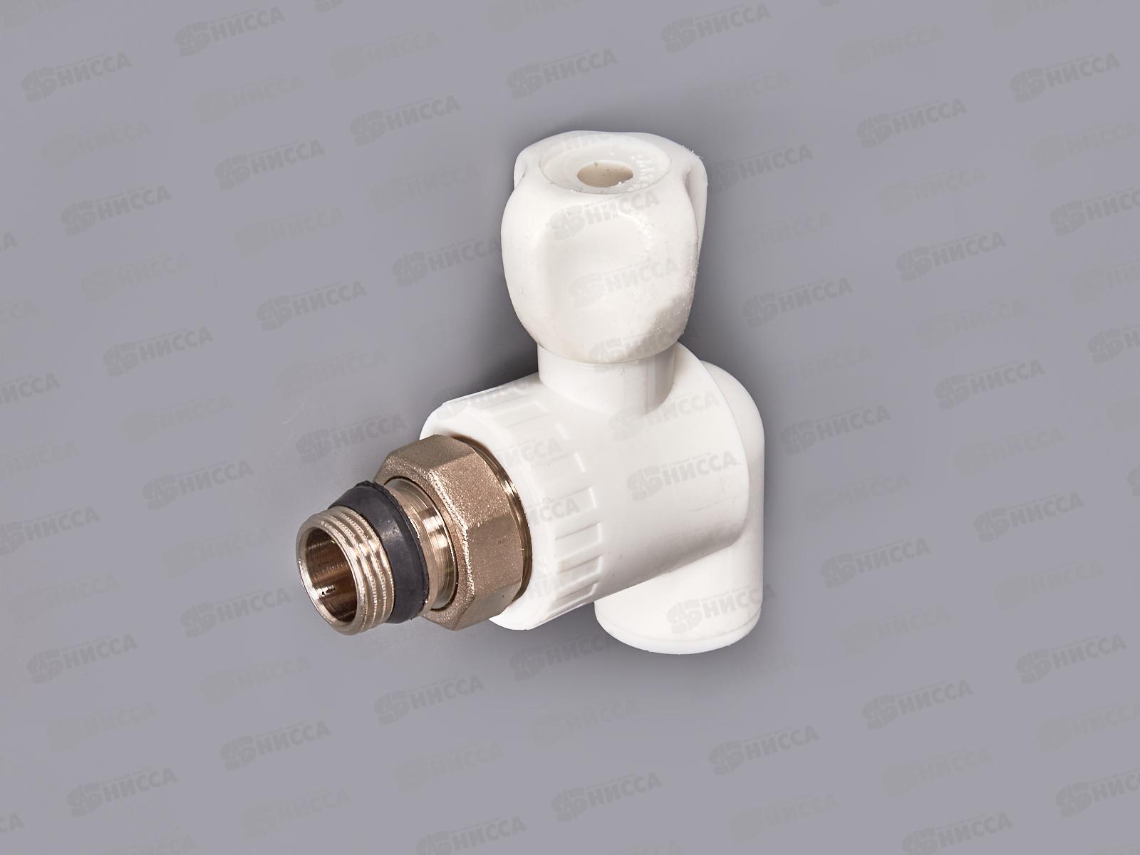 Код:567578; Клапан радиатора угловой (шаровый) PP-R 20x1/2" белый, Jakko *20/100