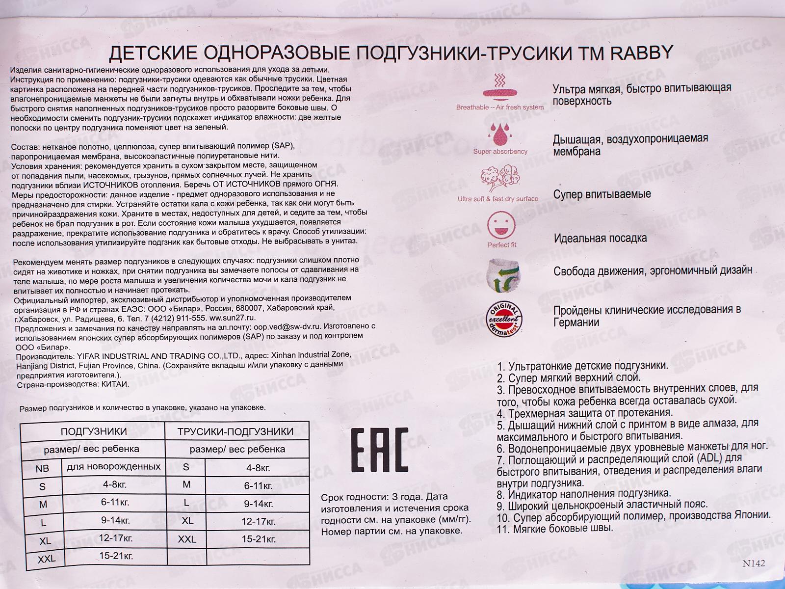 RABBY Подгузники-трусики детские 12-17кг XL 38шт *4 R12-XL-38
