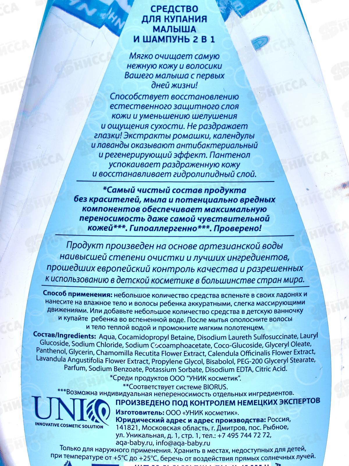 AQA baby Средство для купания малыша и шампунь 2в1 250мл *6