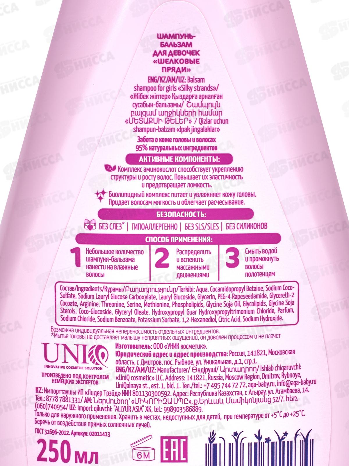 AQA baby KIDS Шампунь-бальзам для девочек Шелковые пряди 250мл *6