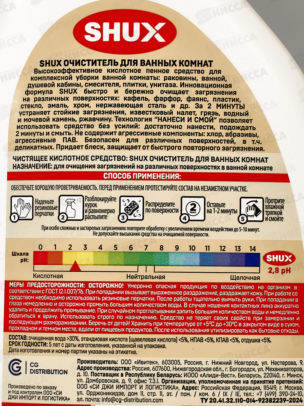 Shux Очиститель для ванных комнат 500мл *10