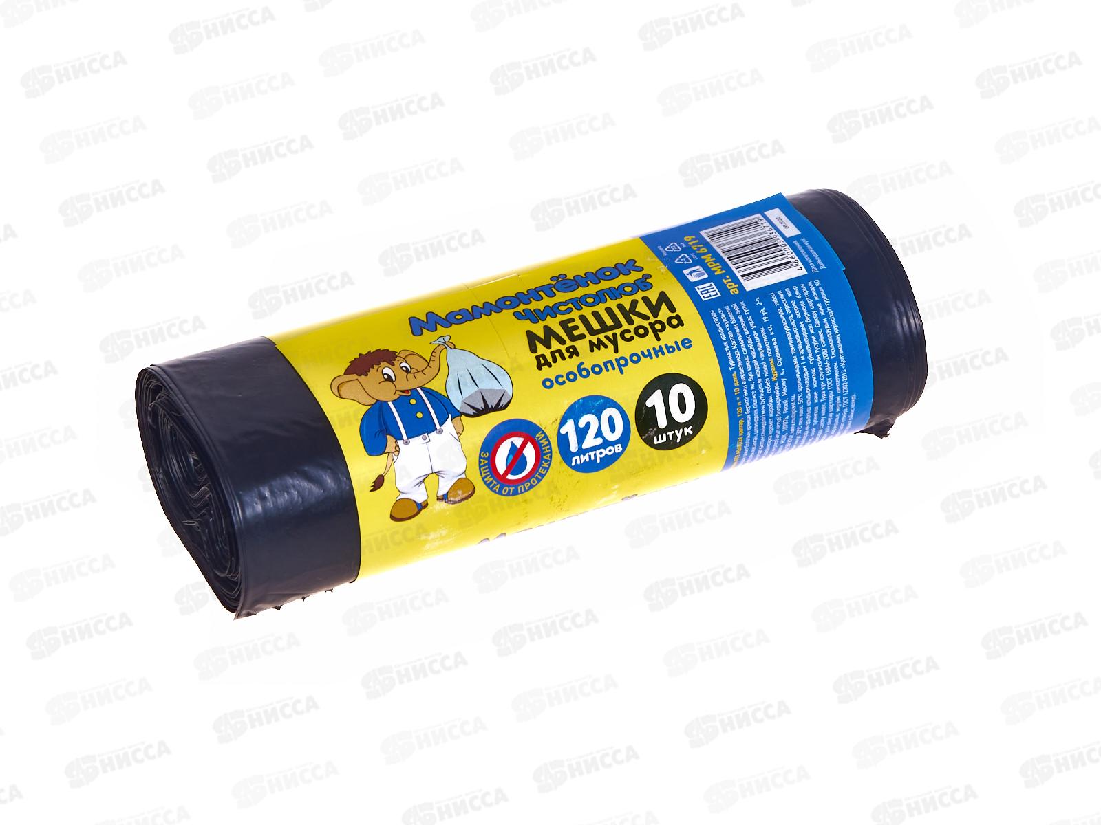 Код:341805; Мешки для мусора 120л 10шт особопрочные "Мамонтенок" 20мкм МП *30