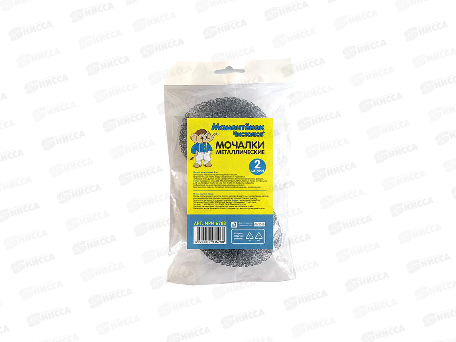 Мочалки Мамонтенок Чистолюб спираль металл, 2 шт предназначены для мытья посуды. Изготовлены из высококачественной стали, устойчивой к коррозии. Также...