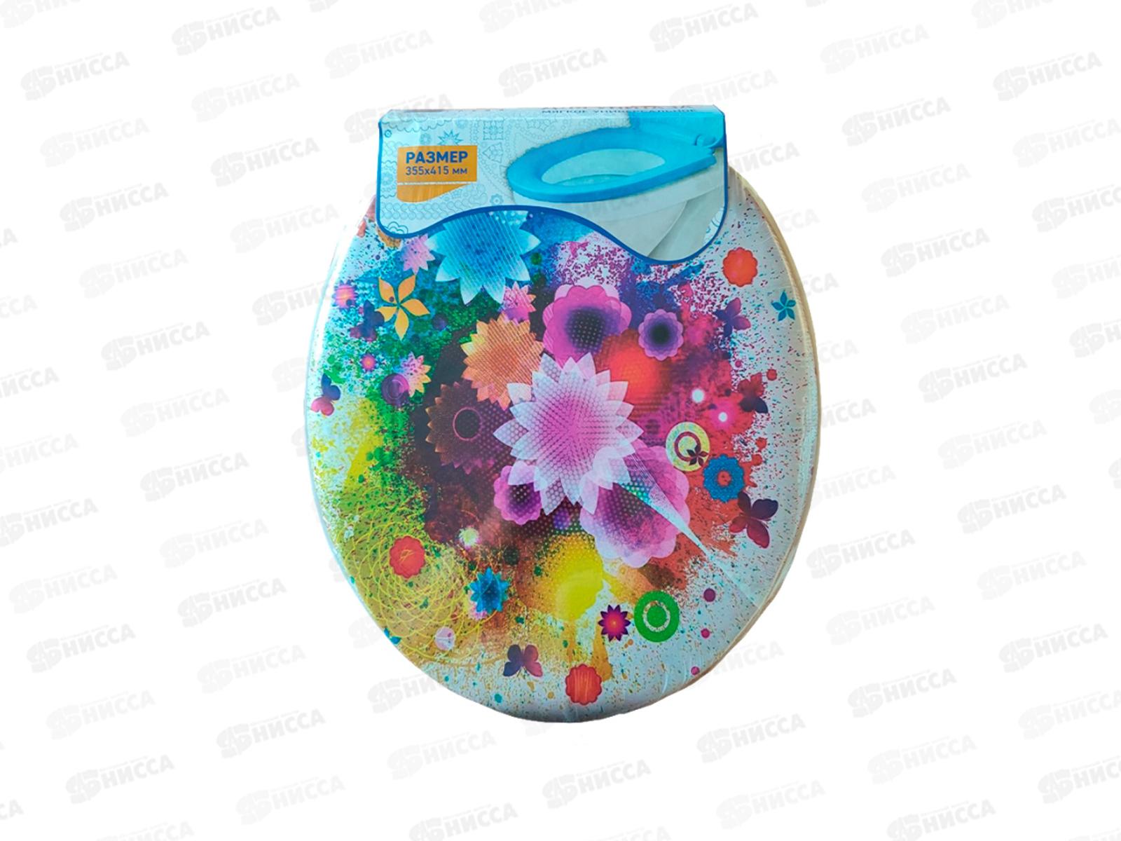 Код:466178; Сиденье на унитаз мягкое с рисунком Акварельный букет *17