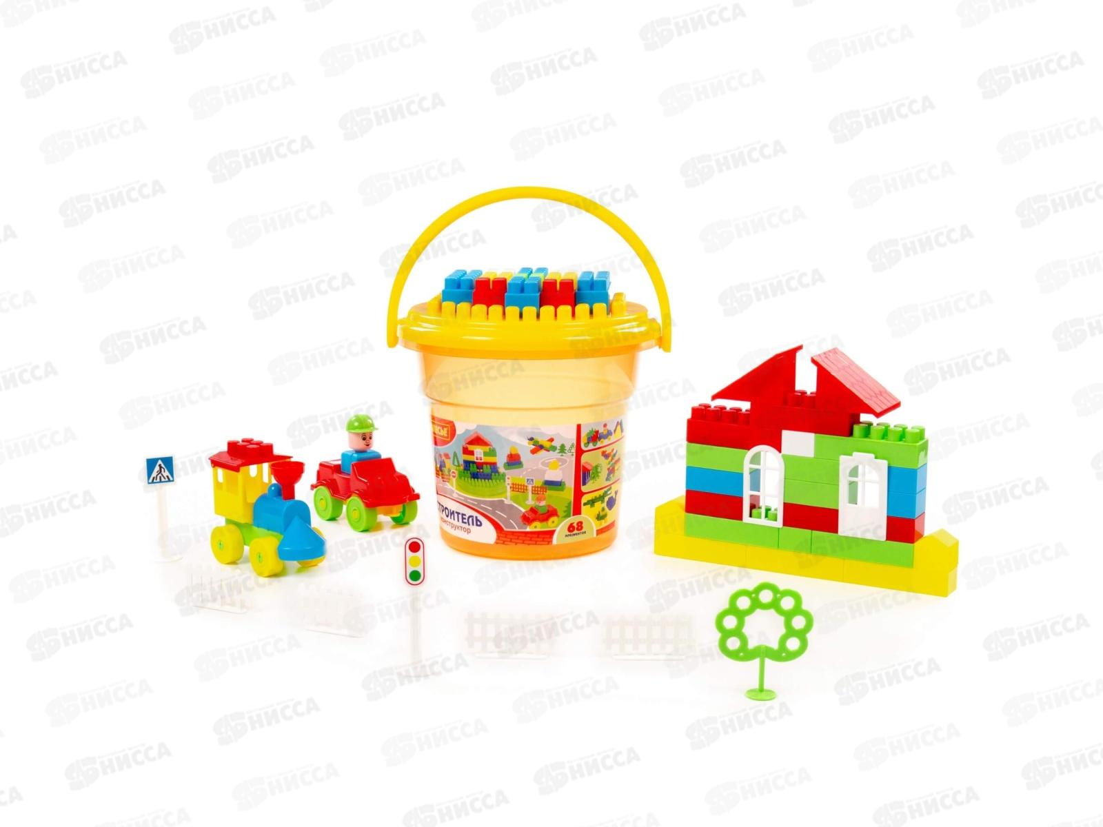 Код:551960; Конструктор "Строитель" 68 элементов (в ведре оранжевом "Макси" с крышкой) 24408 *6
