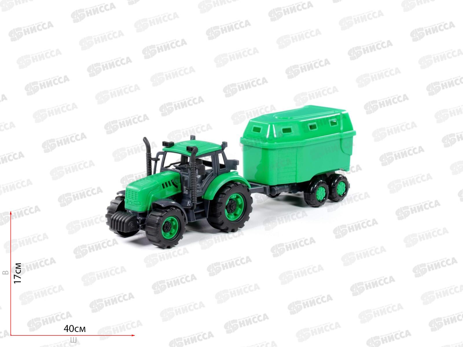 Код:463563; Трактор "Прогресс" с прицепом для перезозки животных (зелёный), 91482 в коробке *8
