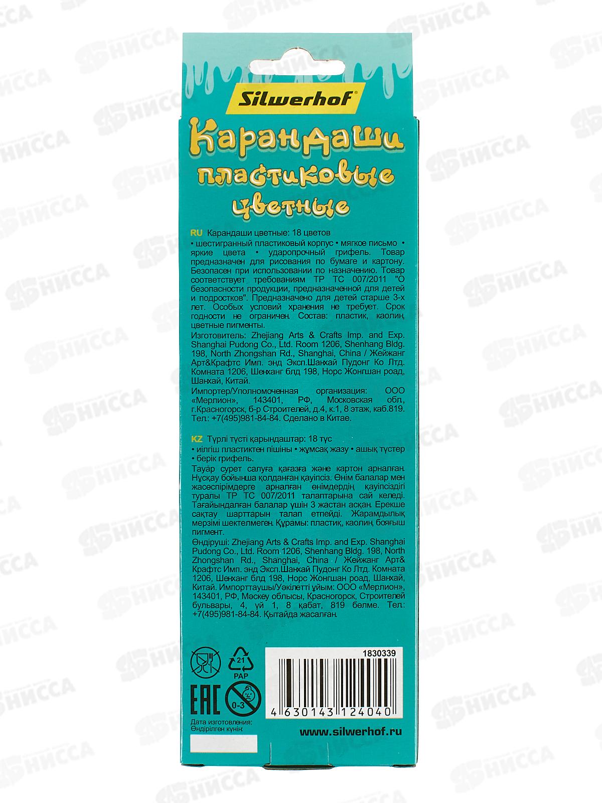 Карандаши 18 цветов SILWERHOF Монстрики шестигранные, пластиковые, картонная упаковка, 1830339*8/160