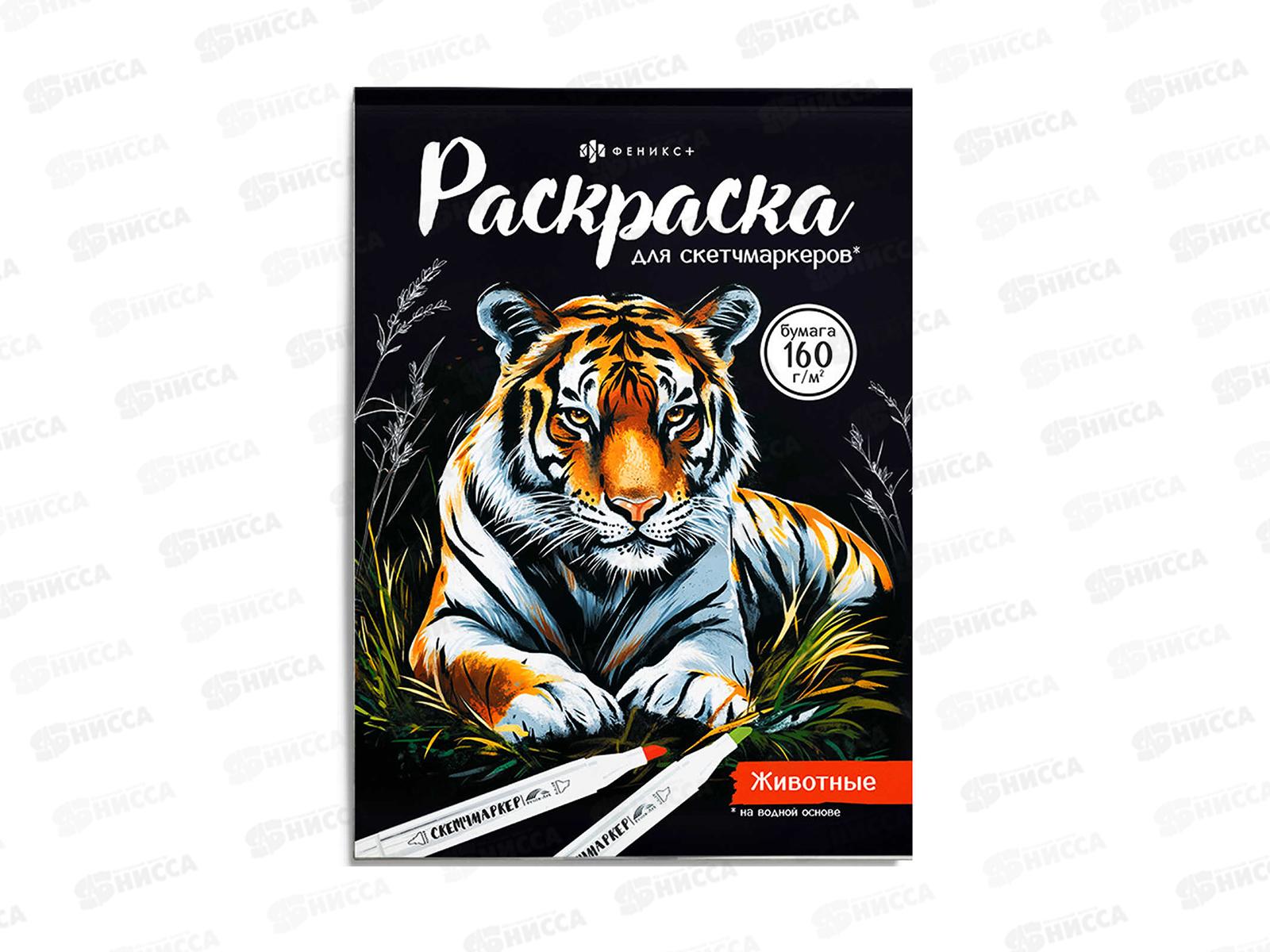 Код:598160; Раскраска ФЕН 16л 200*140мм д/скетч-маркеров Животные, 72132 *50