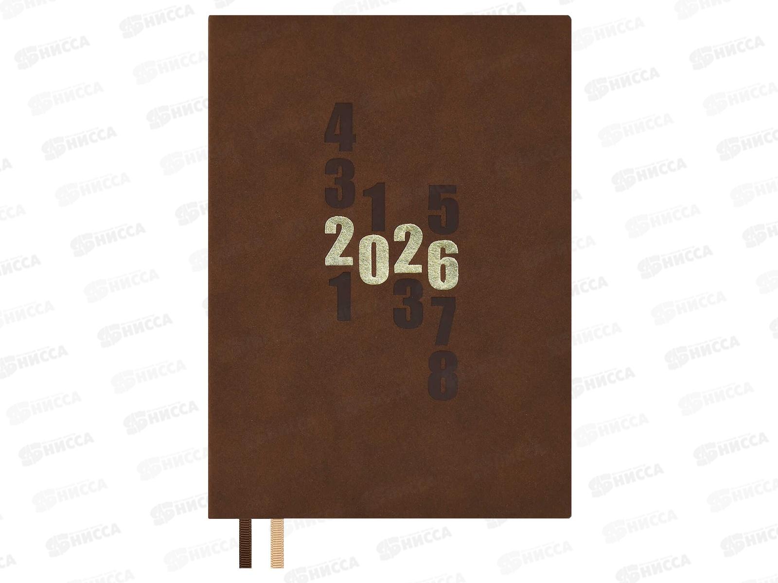 Код:591331; Ежедневник 2026 ФЕН А5 176л. Замша кожзам.мягкий перепл. Коричневый. 70266