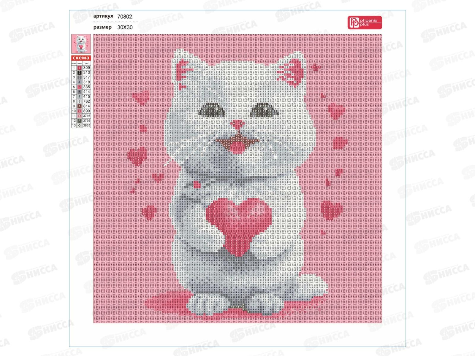 Алмазн.мозаика ФЕН Котенок с сердечком, 30*30, 70802 *25