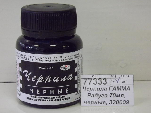 Код:077333; Чернила ГАММА Радуга 70мл, черные, 320009 *24