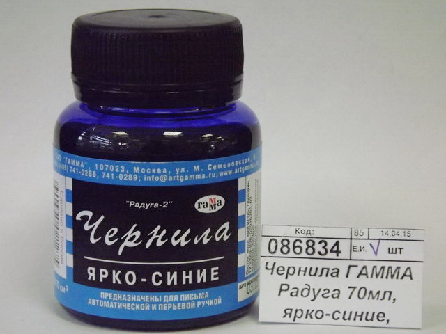 Код:086834; Чернила ГАММА Радуга 70мл, ярко-синие, 320006 *24