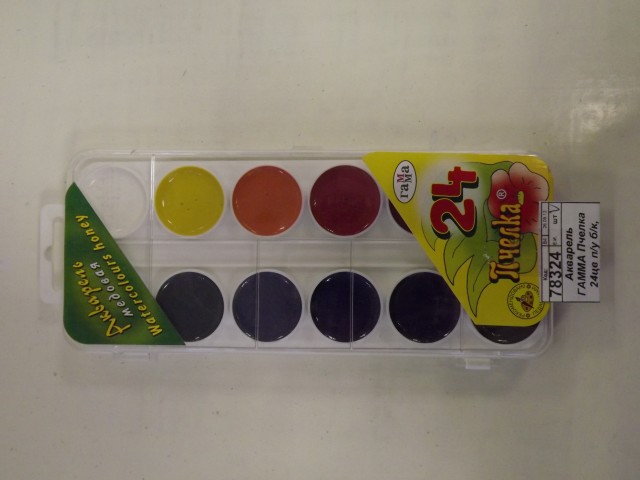 Код:078324; Акварель ГАММА Пчелка 24 цветов пластиковая упаковка, без кисти, 212035 *18