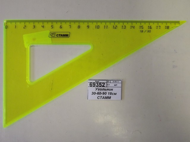 Код:069352; Угольник 30-60-90 18см СТАММ прозрачный, флюоресцентный, ТК47 *20/240