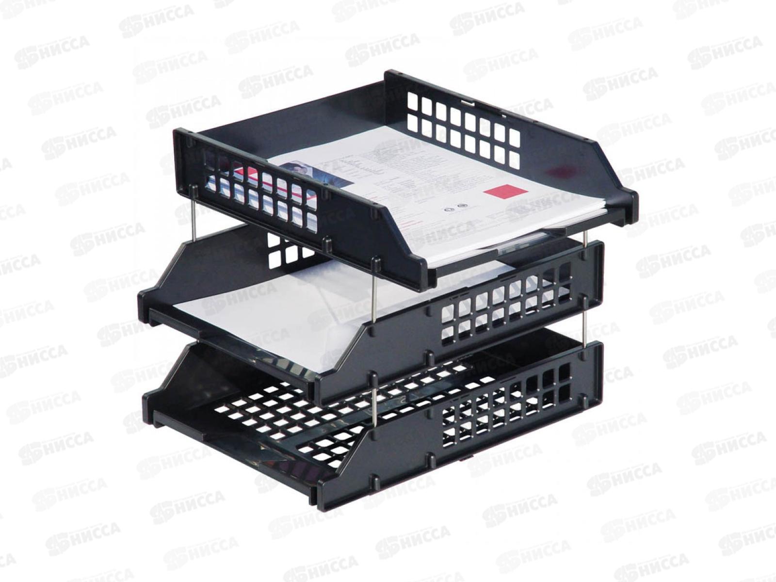Код:272862; Лоток вертикальный 3 секции Эконом СТАММ 2 отделения черный, ЛТ410 *15