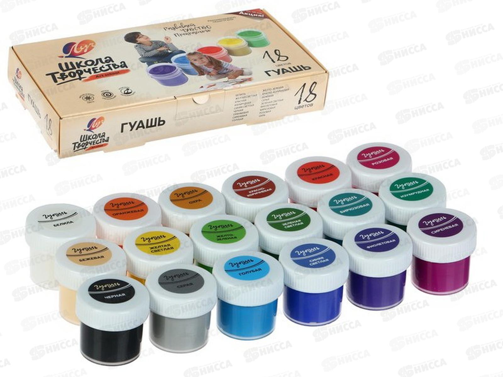 Код:358376; Гуашь ЛУЧ Школа творчества 18цветов 20мл, 29с1754-08*9