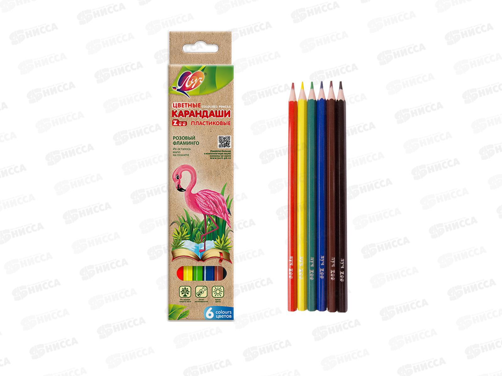 Код:373623; Карандаши 6 цветов ЛУЧ ZOO пластик, шестигранные 29c 1739-08*24/96