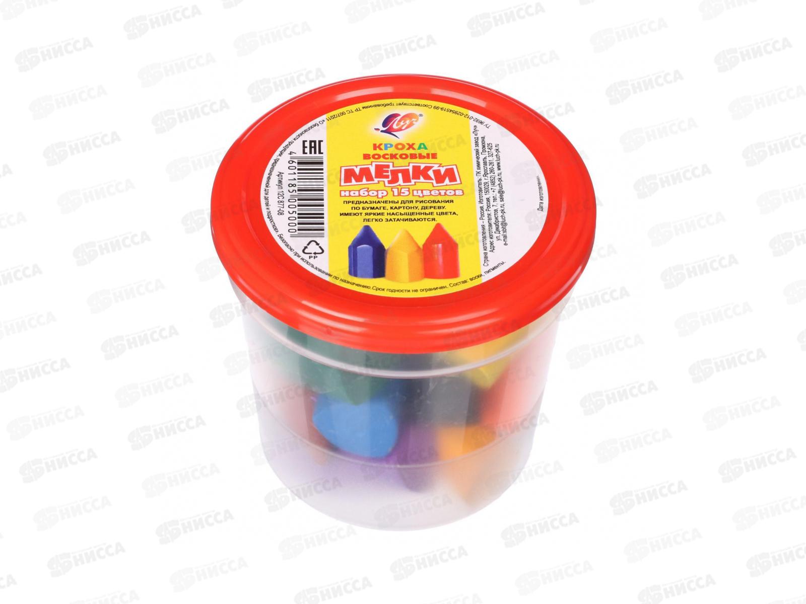 Код:106740; Мелки восковые ЛУЧ Кроха 15 цветов, пластиковый контейнер , 12с877-08 *18