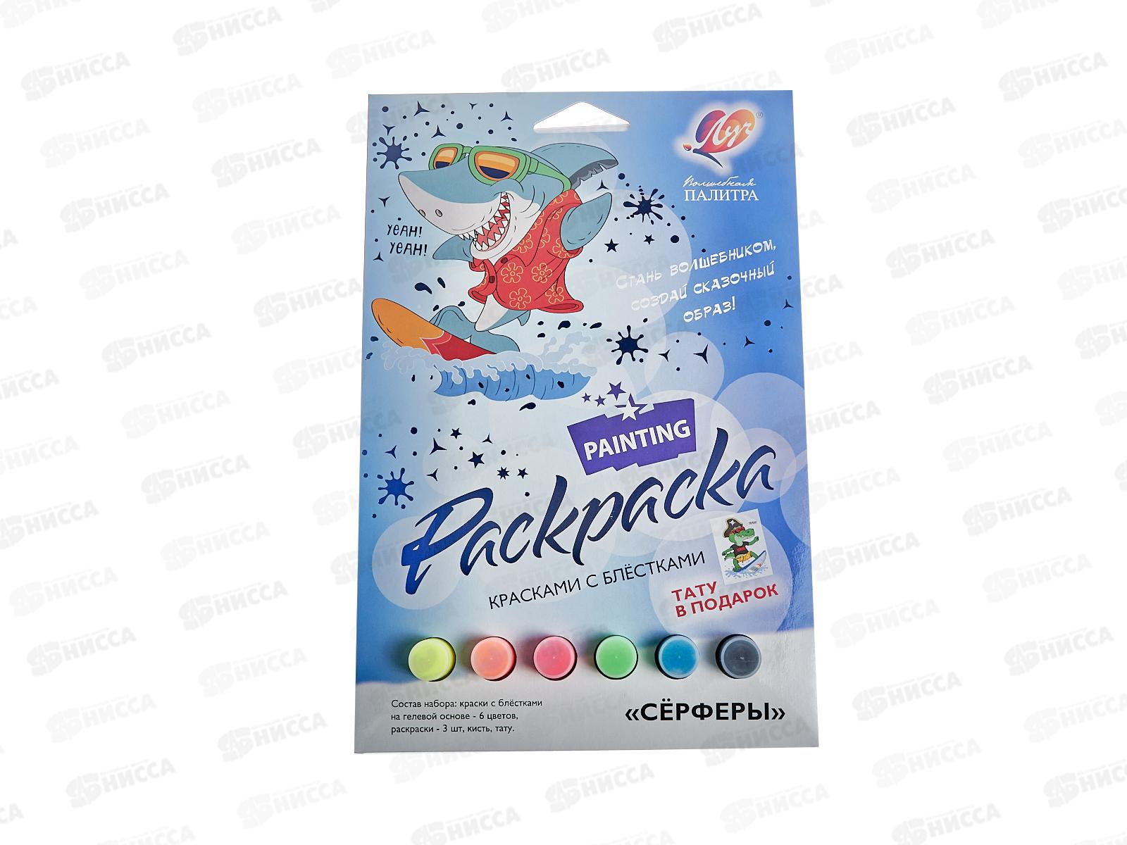 Код:478946; Набор Луч красок с блестками с раскрасками "Сёрферы",31с 2070-08