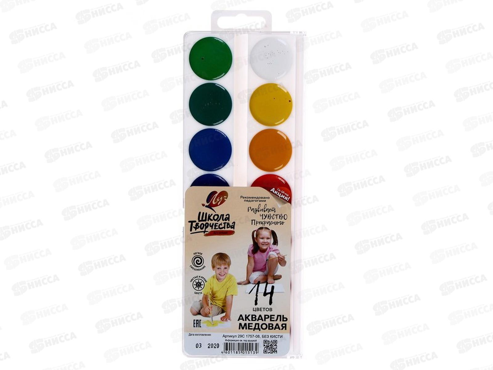 Акварель ЛУЧ медовая Школа творчества 14цветов, без кисти, пластиковая упаковка 29с1757-08*36