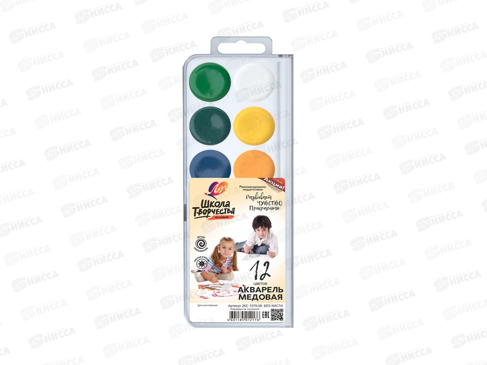 Акварель ЛУЧ медовая Школа творчества 12цветов, без кисти, пластиковая упаковка 29с1756-08*52