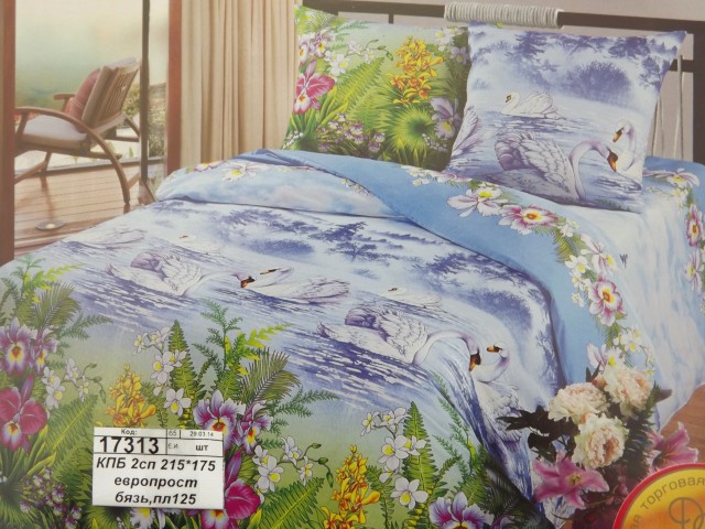 Код:017313; Комплект постельного белья 2 спальный 215*175 европростынь бязь, плотность 125 Лебединое озеро