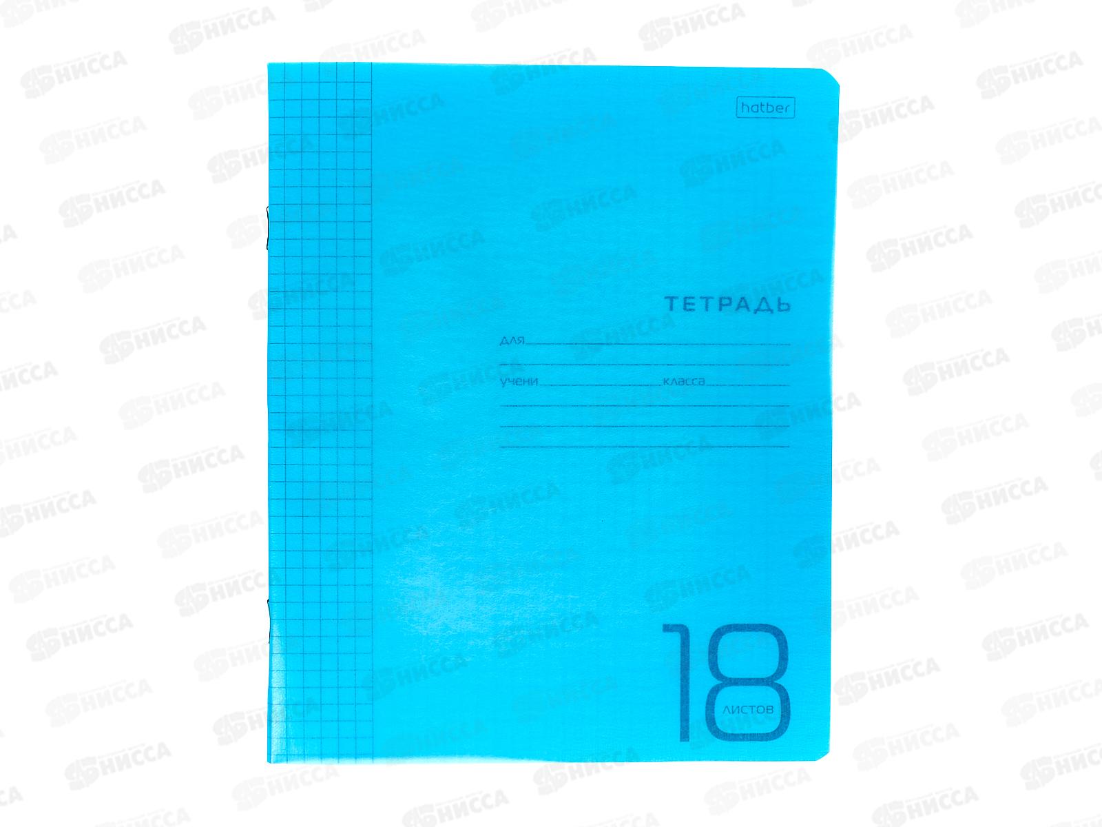 Код:544951; Тетрадь 18листов клетка Hatber пластиковая обложка скоба синяя, 078244 *10/120