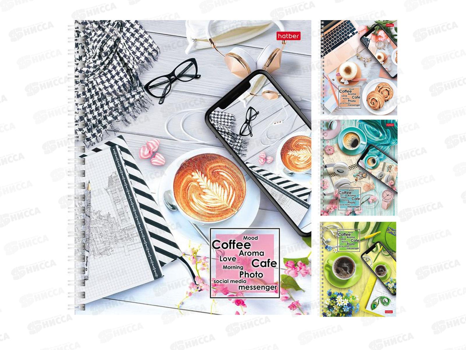 Код:347641; Тетрадь 96листов клетка Hatber Время для кофе,гребень *4/48