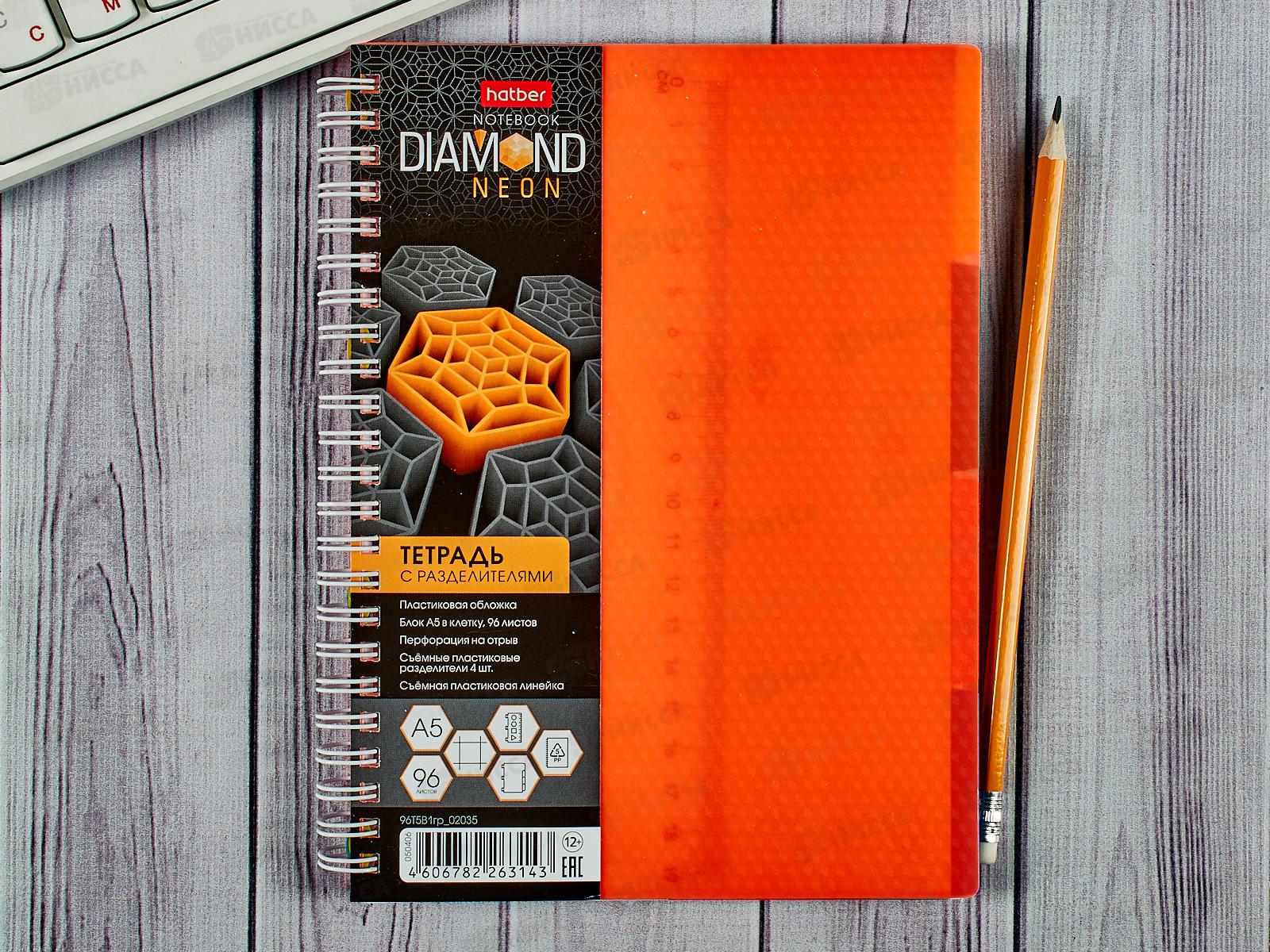 Код:482655; Тетрадь 96л кл. Hatber Diamond neon оранж.02035 греб. *40