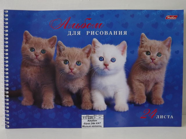 Код:117225; Альбом для рисования 24 листов Hatber Милые котята, мелованный, на гребне, 406 *5/50