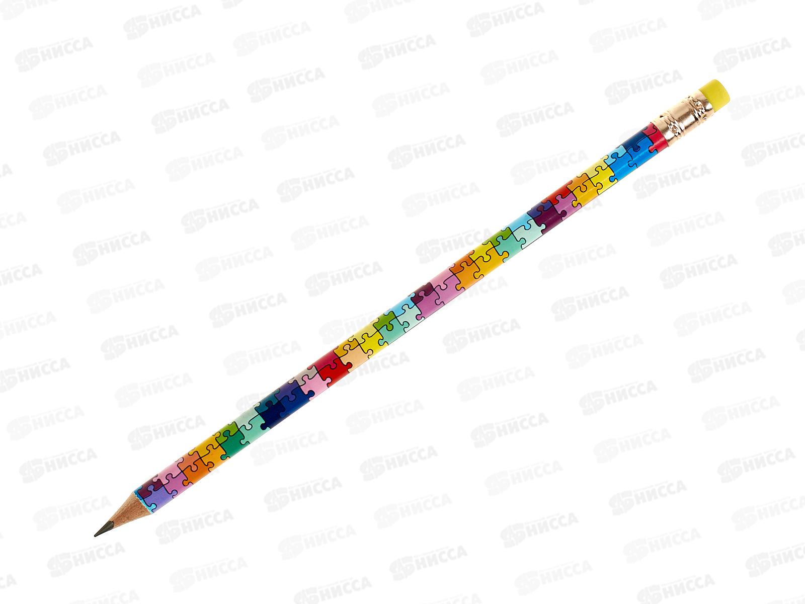Код:385599; Карандаш чернографитный с ластиком Hatber Puzzle 72111*72/288