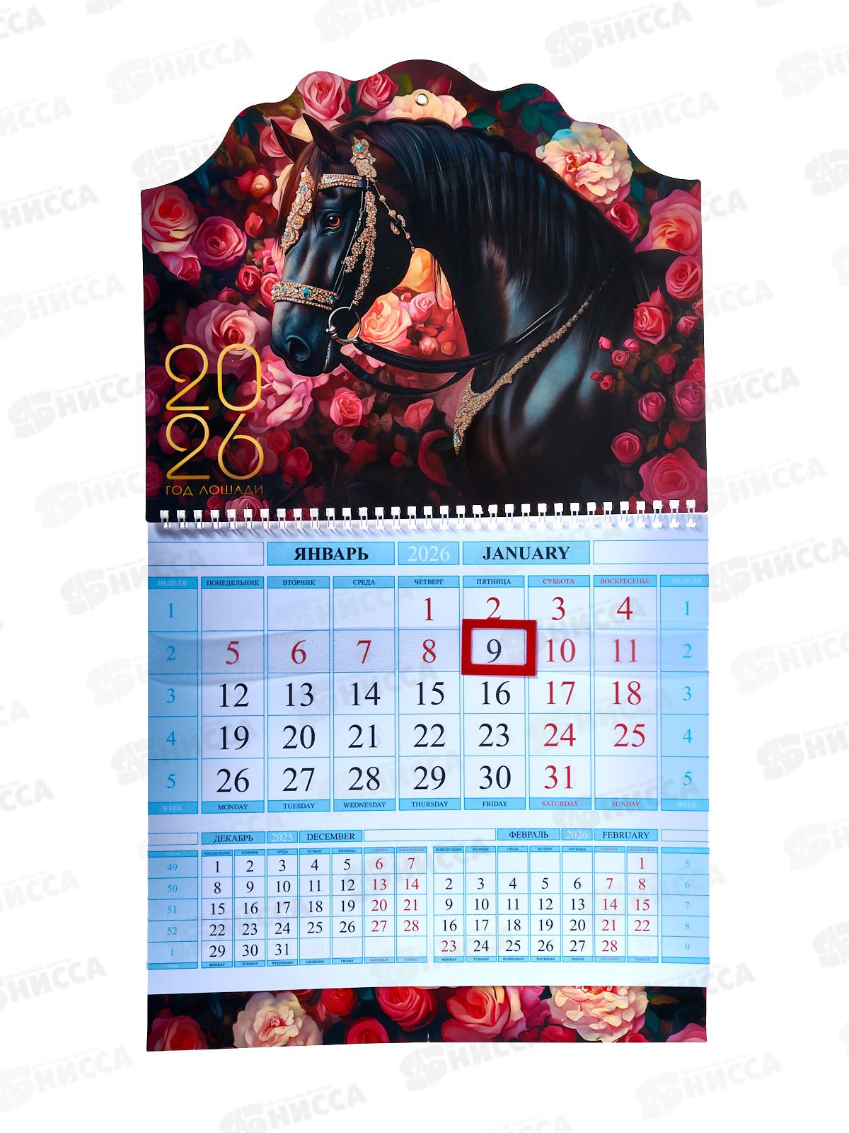Код:582948; Календарь квартальный 2026 ХАТ 4 бл. Год Лошади, 09502 (297х755) *20