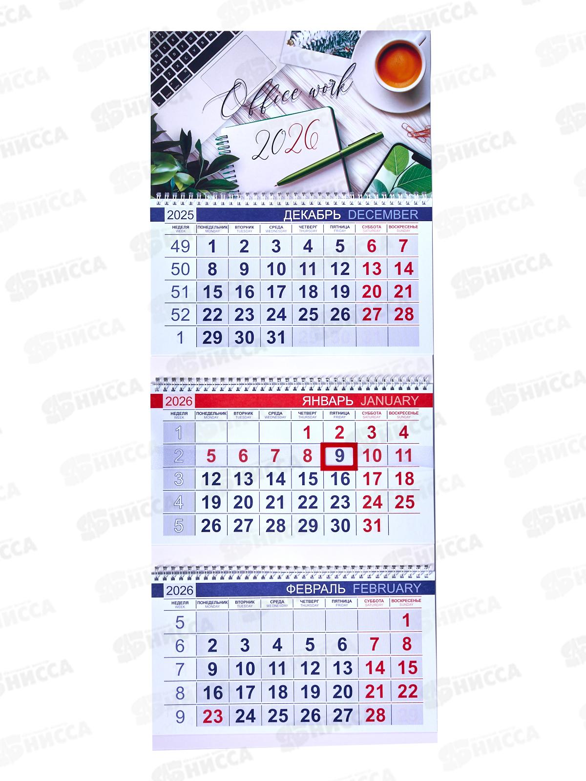 Код:582947; Календарь квартальный 2026 ХАТ 4 бл. Office work, 34449 (297х755) *20