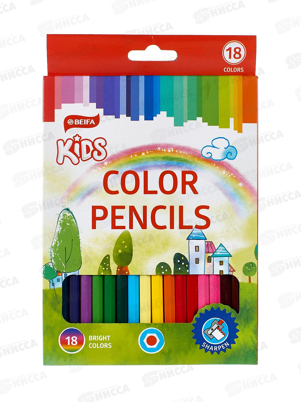 Код:280683; Карандаши 18цветов BEIFA Яркий мир, 29098 *8/96