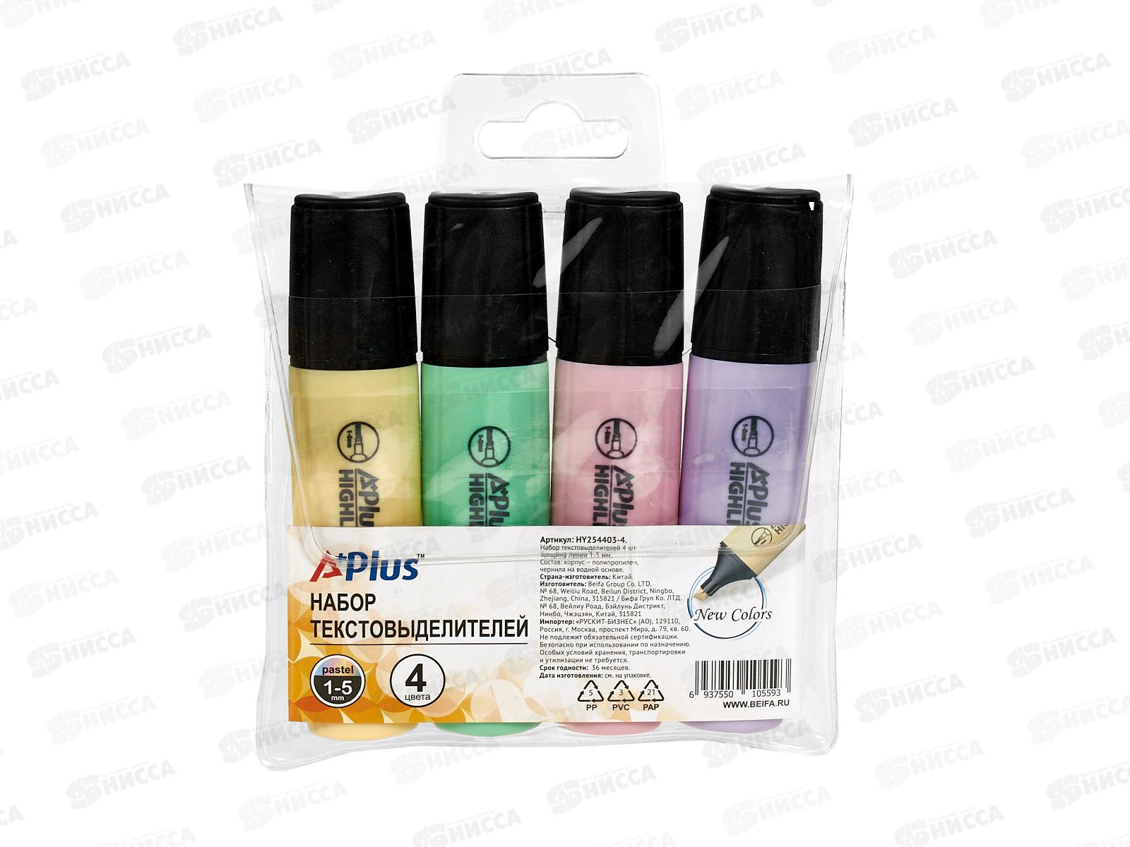 Код:420631; Маркеры BEIFA текстовый пастель 4 цвета (желтый,сиреневый,розовый,салатовый)254403-4 *12/144