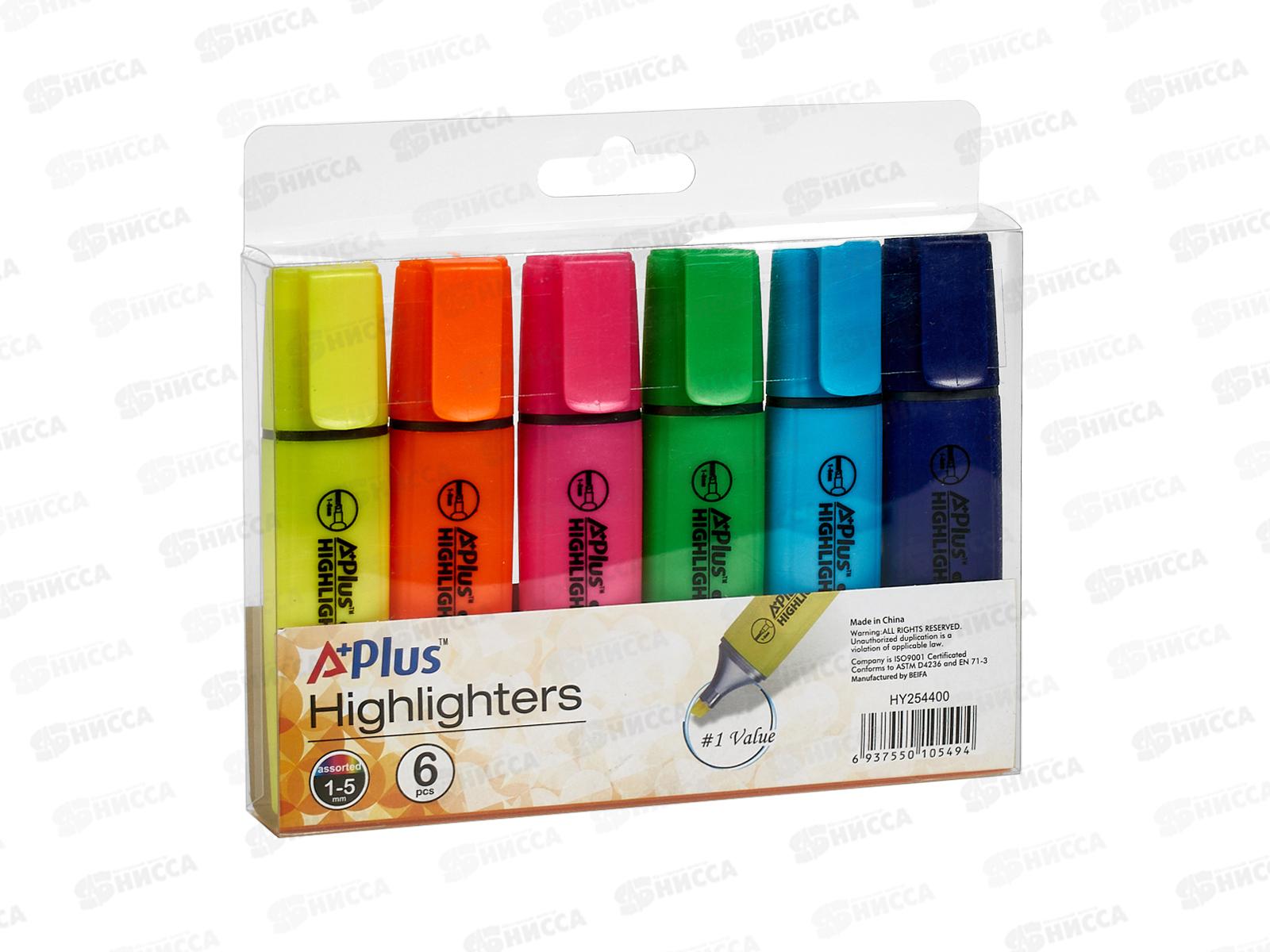 Код:445224; Маркеры BEIFA текстовый 6 цветов (желтый, оранжевый, фиолетовый, салатовый, розовый, голубой) 254400-6 *12/144