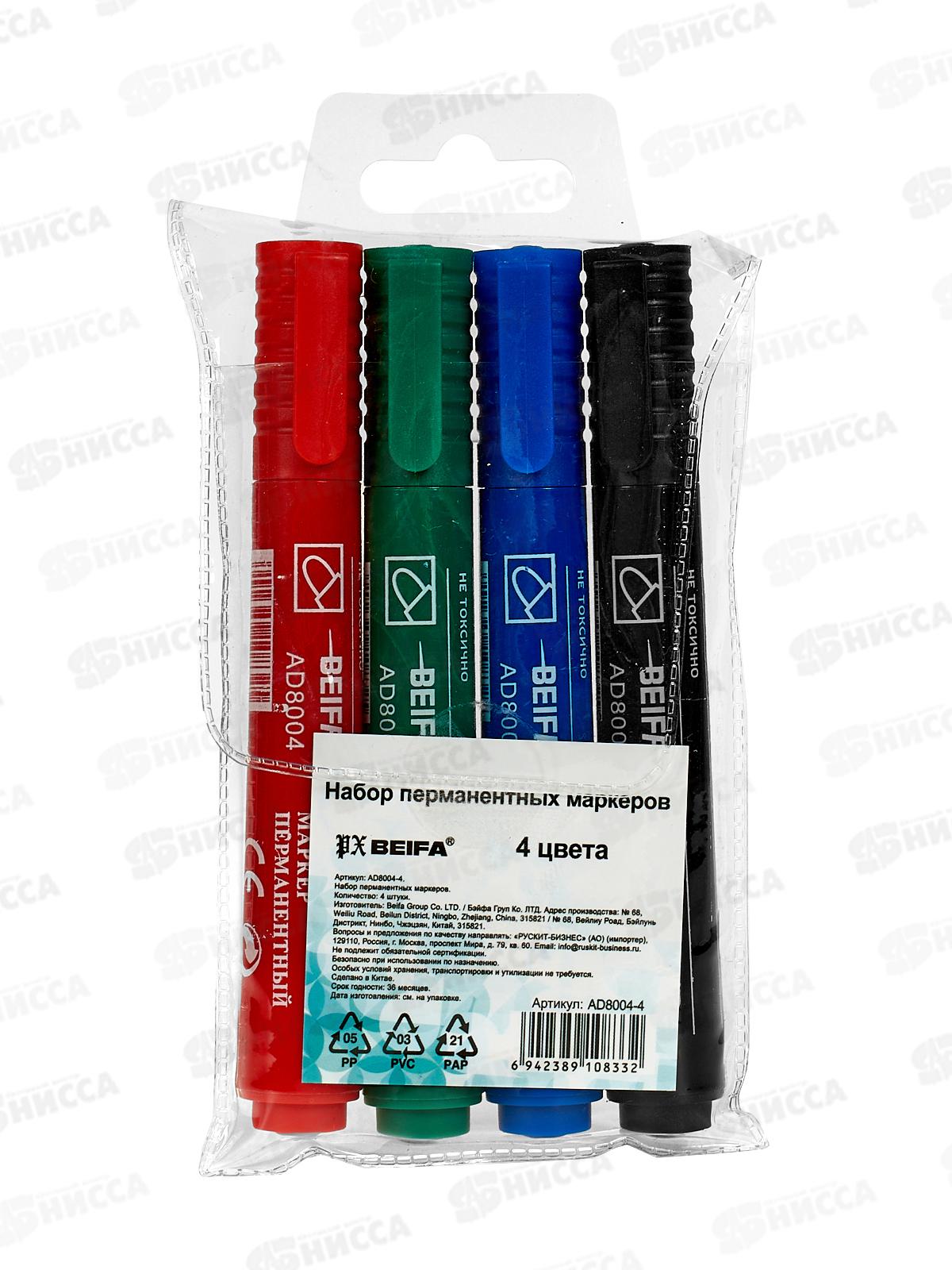 Код:572203; Маркеры BEIFA Classic 4цвета, пермамент., круглые 3мм AD8004-4 *12/144