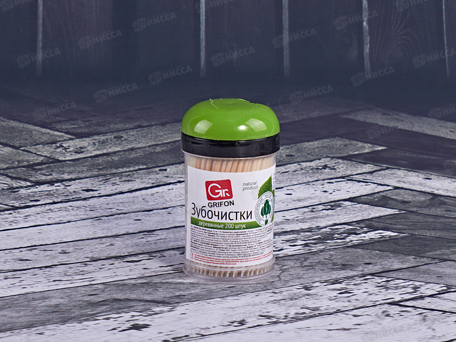 Код:393478; Зубочистки Grifon из дерева 200шт в пластиковой баночке *24 400-003