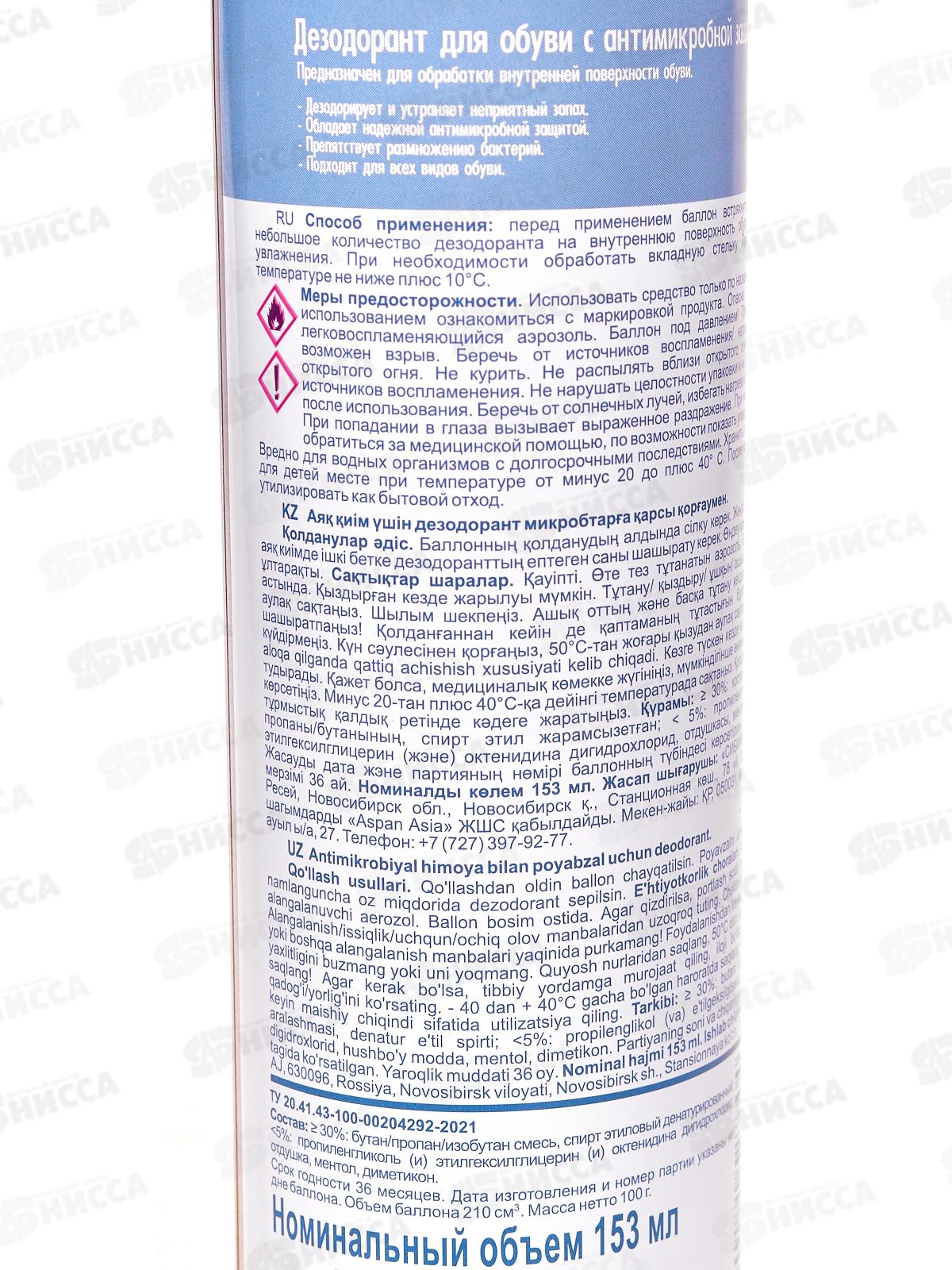 Footon дезодарант с антимикробной защитой д/обуви 153мл