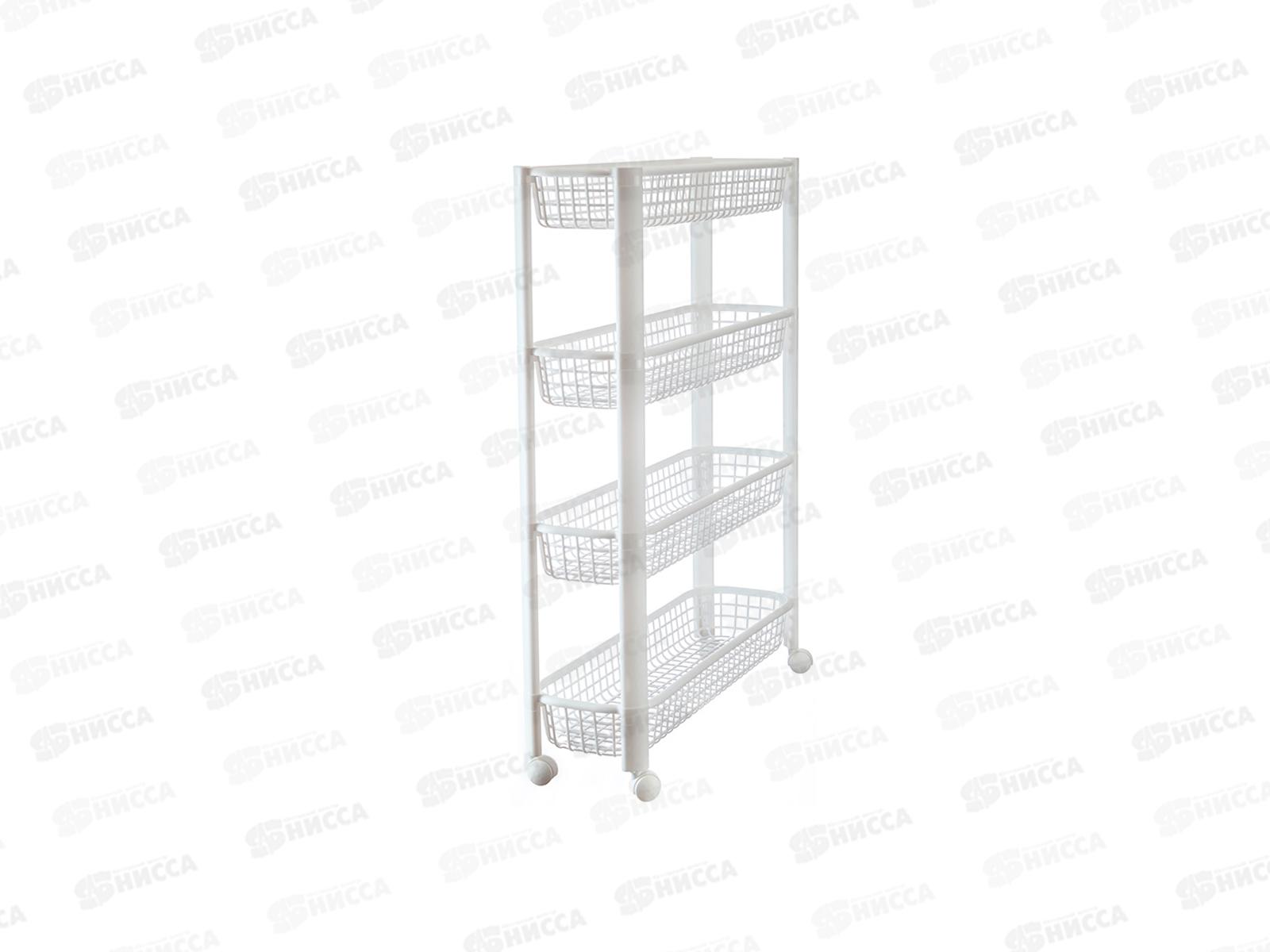 Код:258417; Полка узкая 4-х секционная на колесах Белый М2719 *3