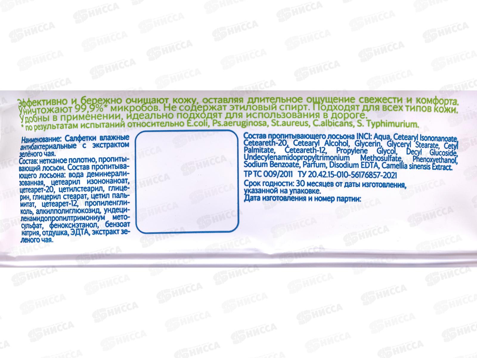 Antibacterial Protection Влажные салфетки №15 ант с зеленым чаем 80177